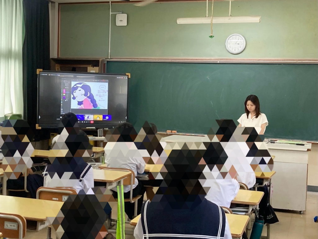 プロの仕事を体験してほしいという思いから、授業の途中で、現役アニメーターとオンラインでつなぎ、